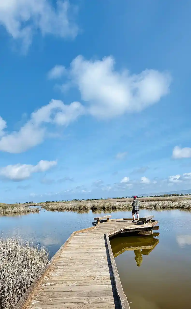 A flooded multi-use trail in Coyote Hills Regional Park